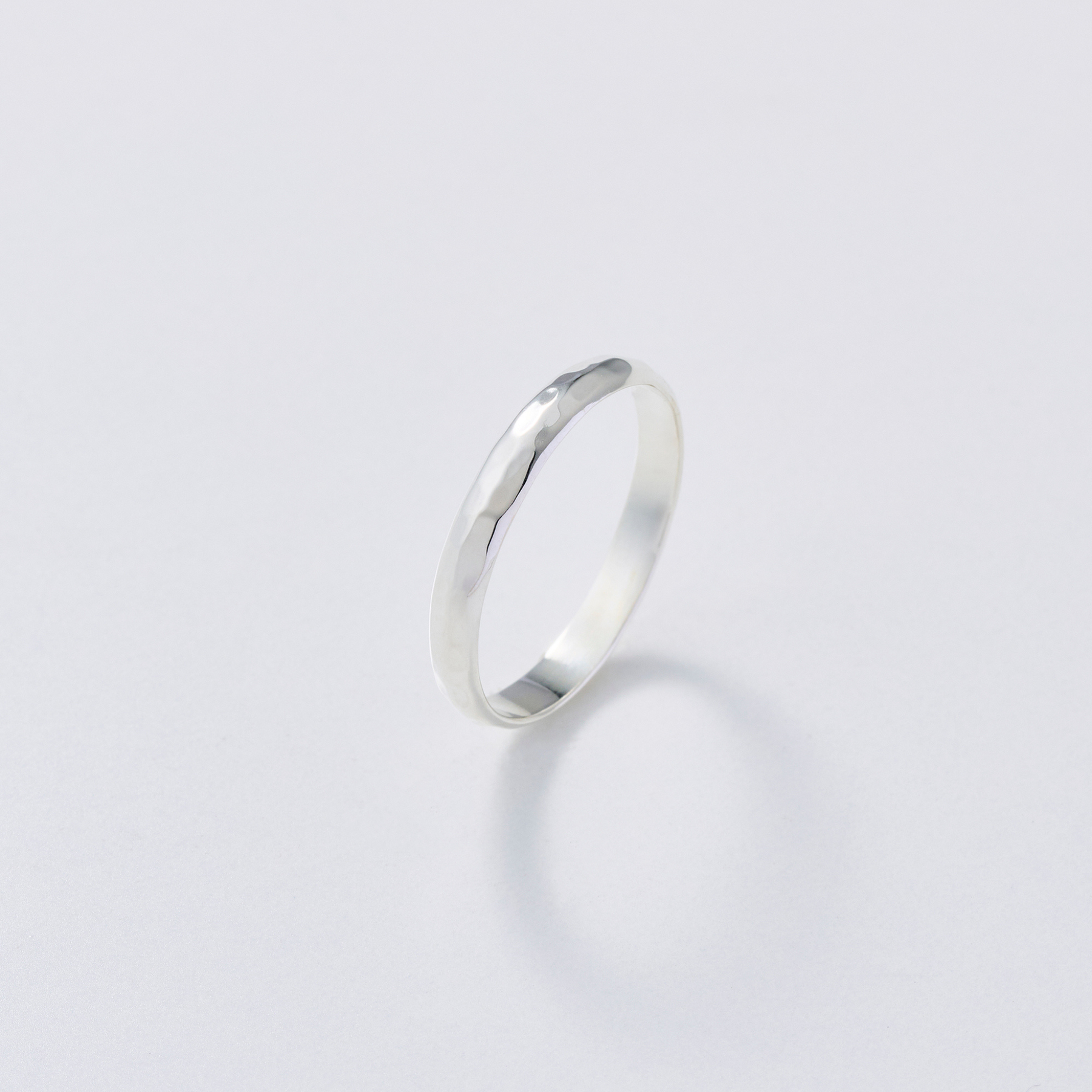 ◆どんなスタイルにも合わせやすい甲丸タイプの槌目デザイン