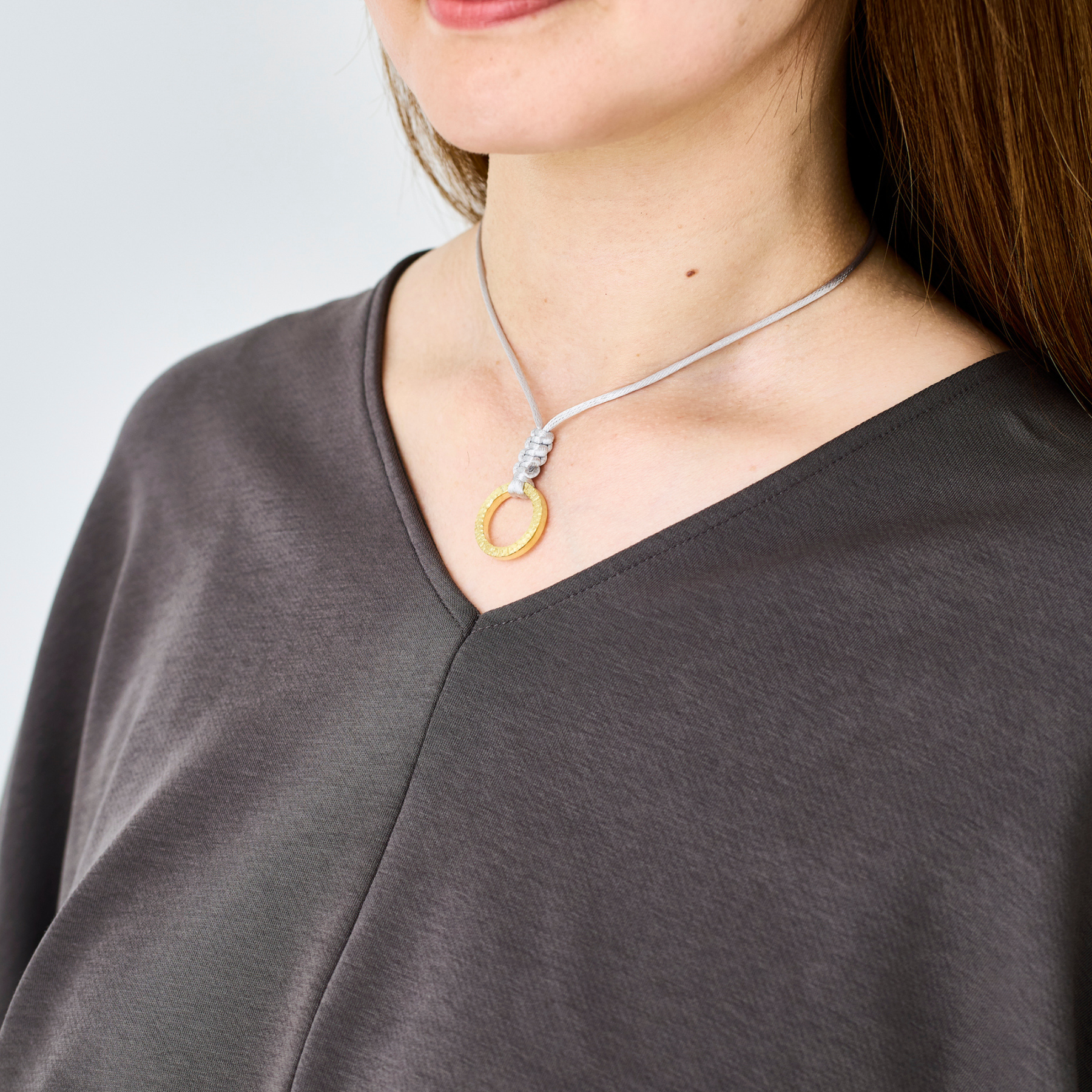 首元に沿わせても、少し余裕を持たせても美しく馴染みます。