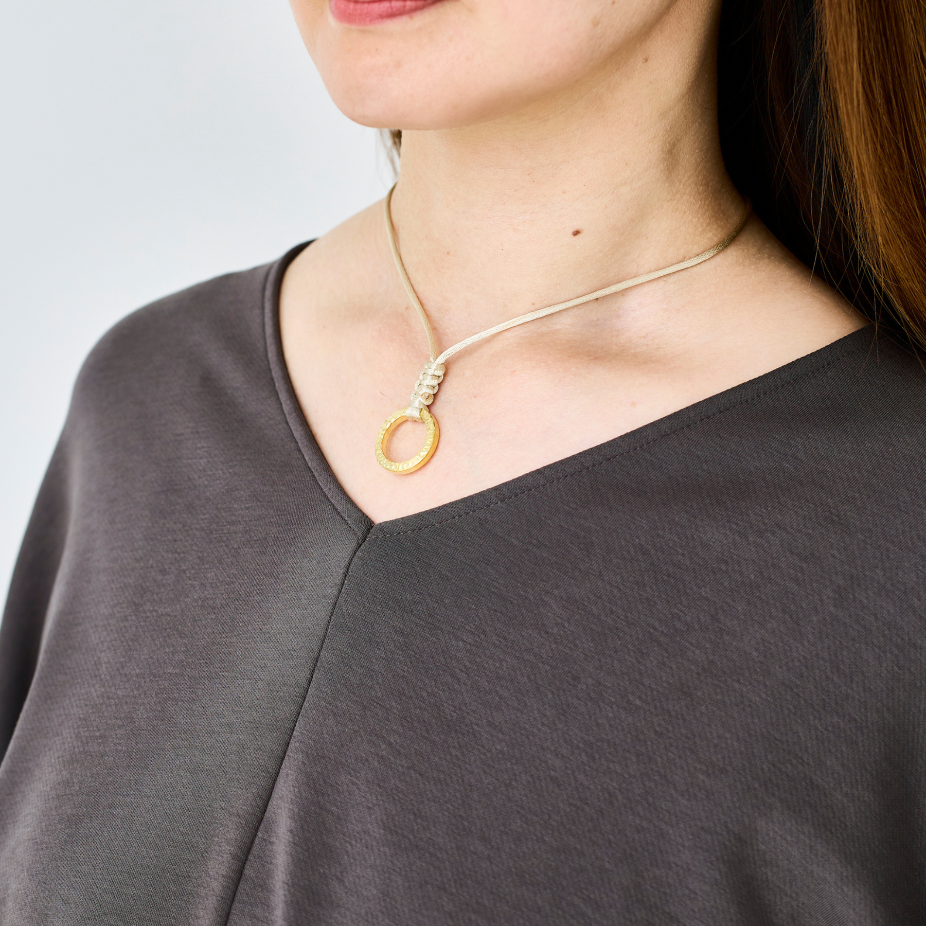 首元に沿わせても、少し余裕を持たせても美しく馴染みます。