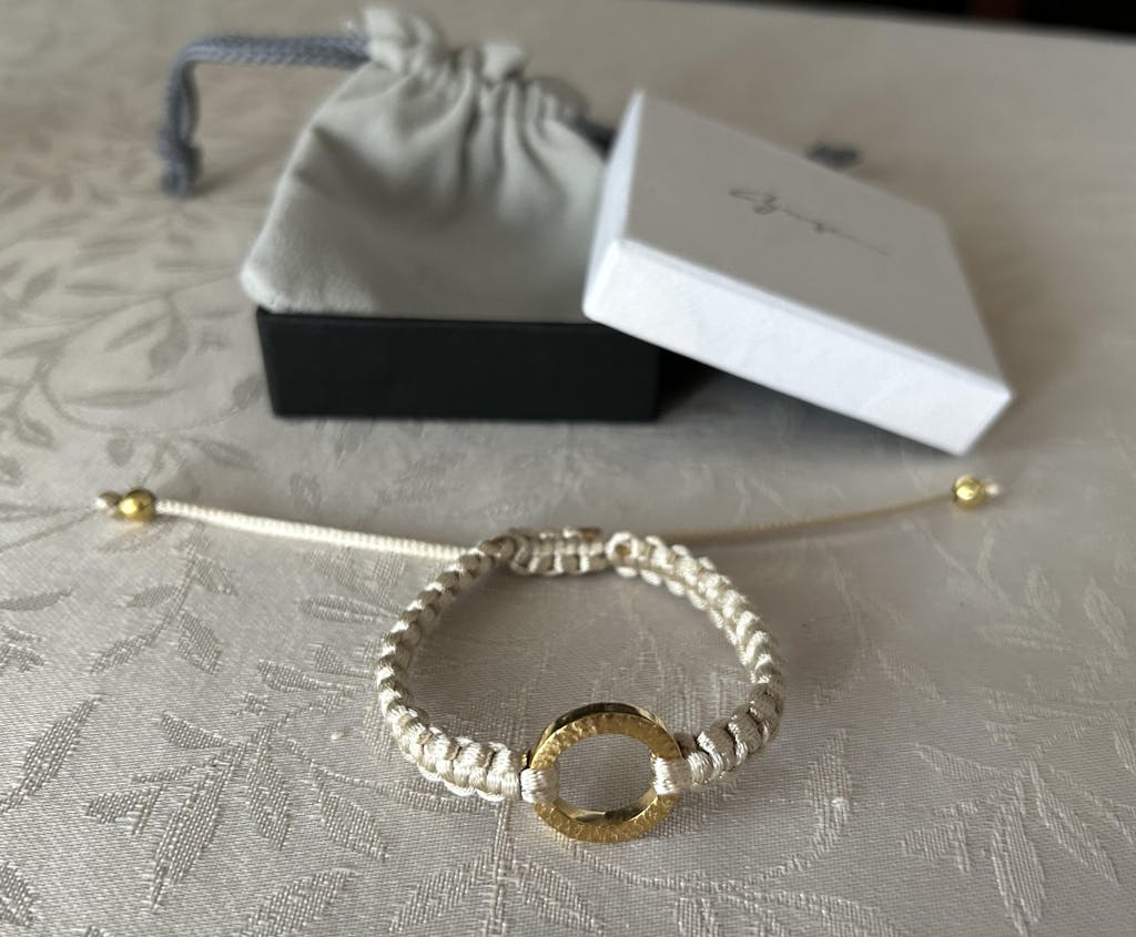 繊維産業が盛んな北陸で生み出される上質なサテンコードと純金コーティングしたシルバー925を組み合わせたブレスレット。